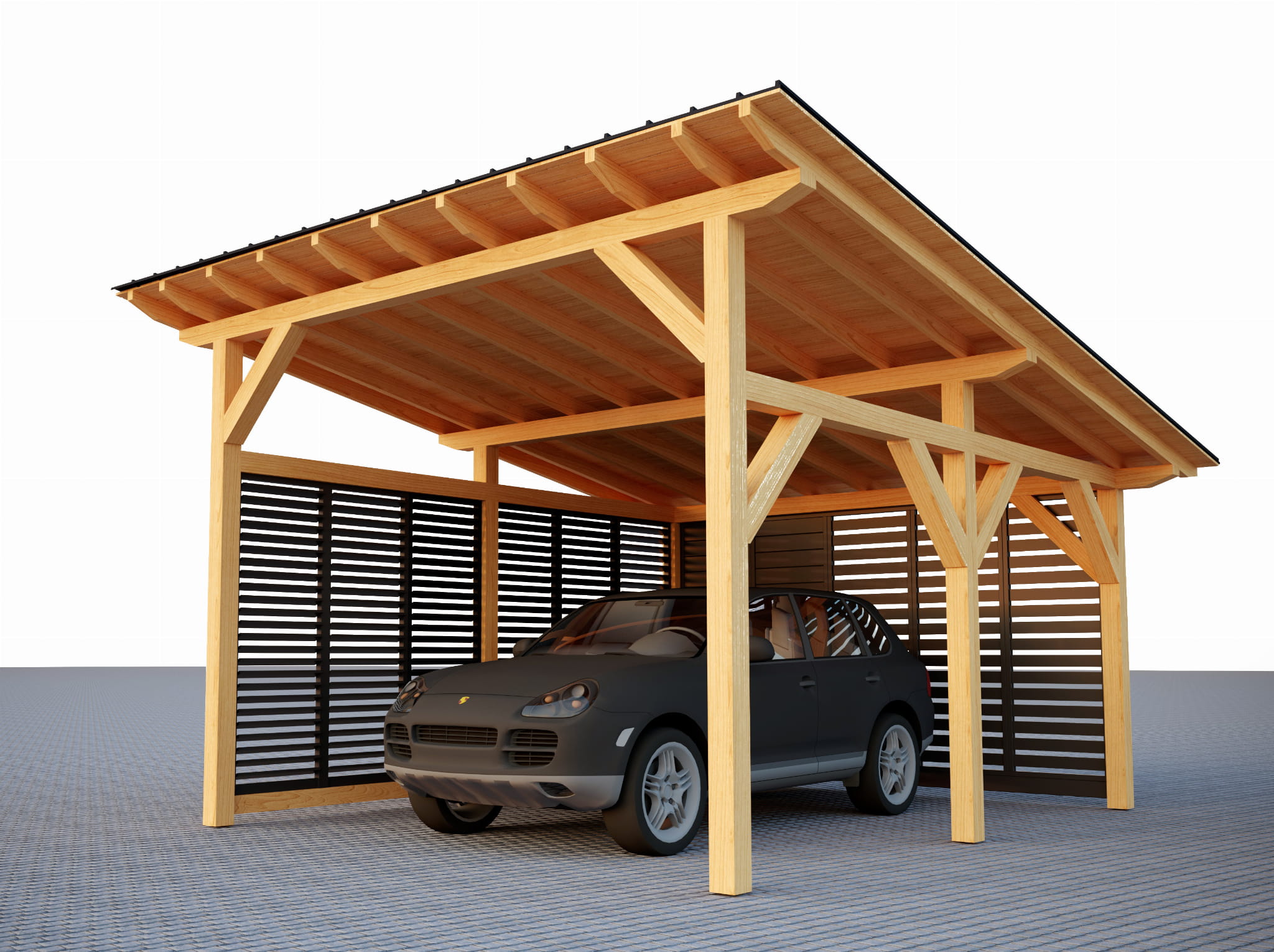 Oferta dotyczy struganej konstrukcji wiaty, przeznaczonej do samodzielnego montażu. Konstrukcja przez nas przygotowana jest docięta komputerowo na maszynie CNC oraz posiada wszystkie konieczne obróbki ciesielskie, tj. gniazda, czopy, wiercenia, jaskółcze ogony. Każdy element jest ponumerowany zgodnie z projektem i umieszczony w paczce. Prosta konstrukcja i precyzyjne połączenia sprawią, że podążając krok po kroku za oznaczeniami zawartymi w projekcie postawisz obiekt jak z klocków LEGO.
