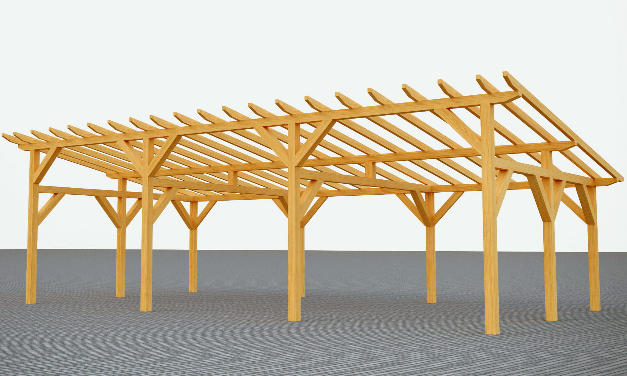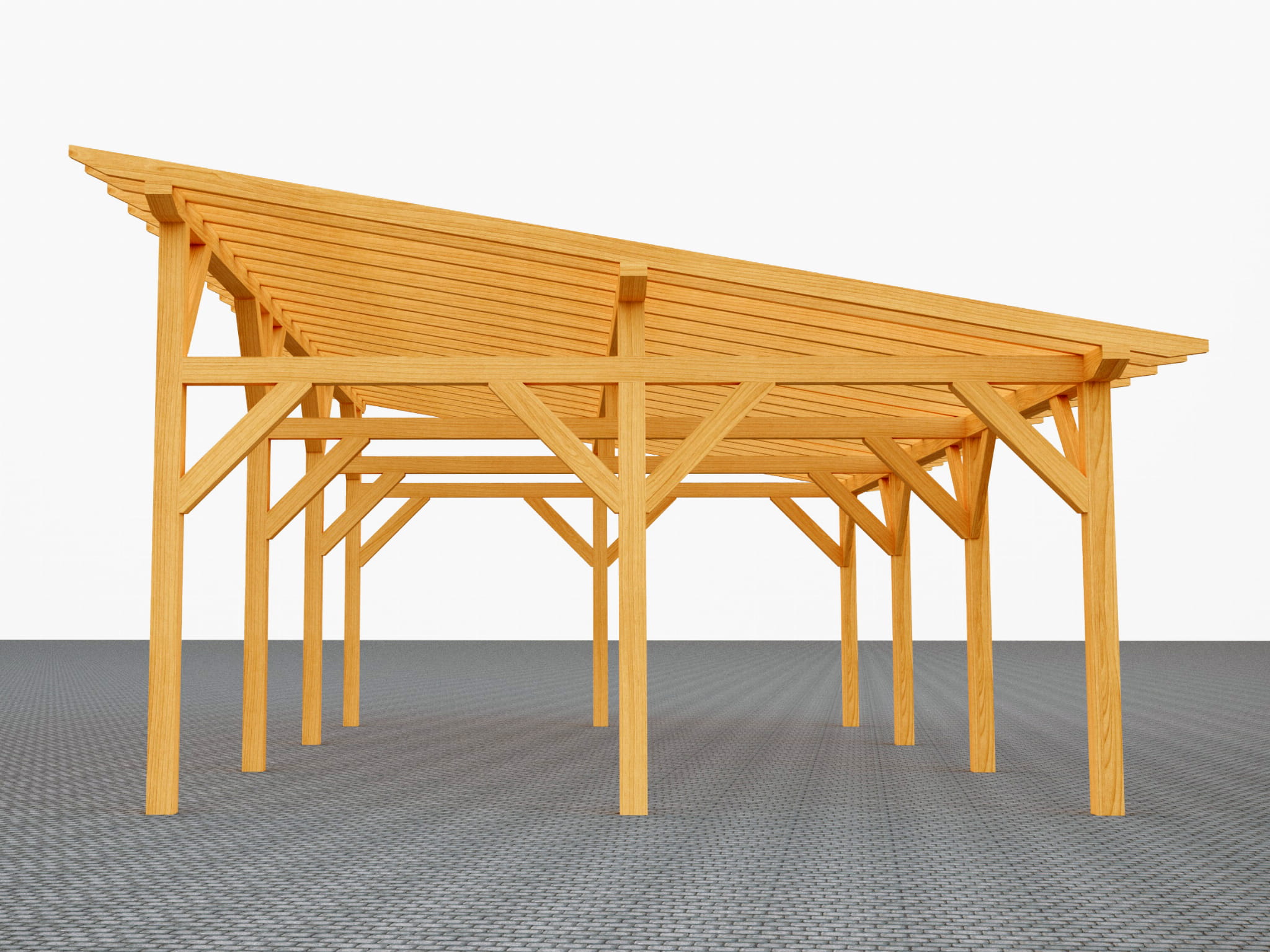 Oferta dotyczy struganej konstrukcji wiaty, przeznaczonej do samodzielnego montażu. Konstrukcja przez nas przygotowana jest docięta komputerowo na maszynie CNC oraz posiada wszystkie konieczne obróbki ciesielskie, tj. gniazda, czopy, wiercenia, jaskółcze ogony. Każdy element jest ponumerowany zgodnie z projektem i umieszczony w paczce. Prosta konstrukcja i precyzyjne połączenia sprawią, że podążając krok po kroku za oznaczeniami zawartymi w projekcie postawisz obiekt jak z klocków LEGO.