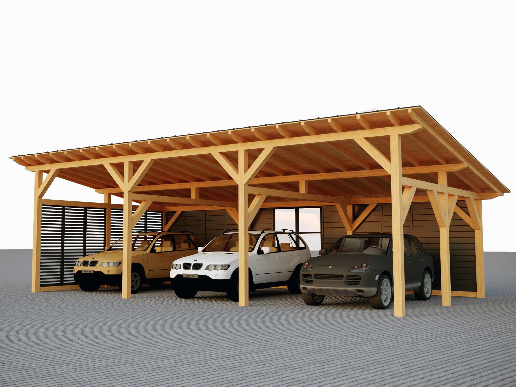 Wiata MAJORKA to wygodna i funkcjonalna wiata drewniana na trzy samochody lub do przechowywania materiałów, zaprojektowana w nowoczesnym stylu. To świetne rozwiązanie dla inwestorów, którzy chcą połączyć funkcję wiaty garażowej z konstrukcją wsporczą pod panele fotowoltaiczne.