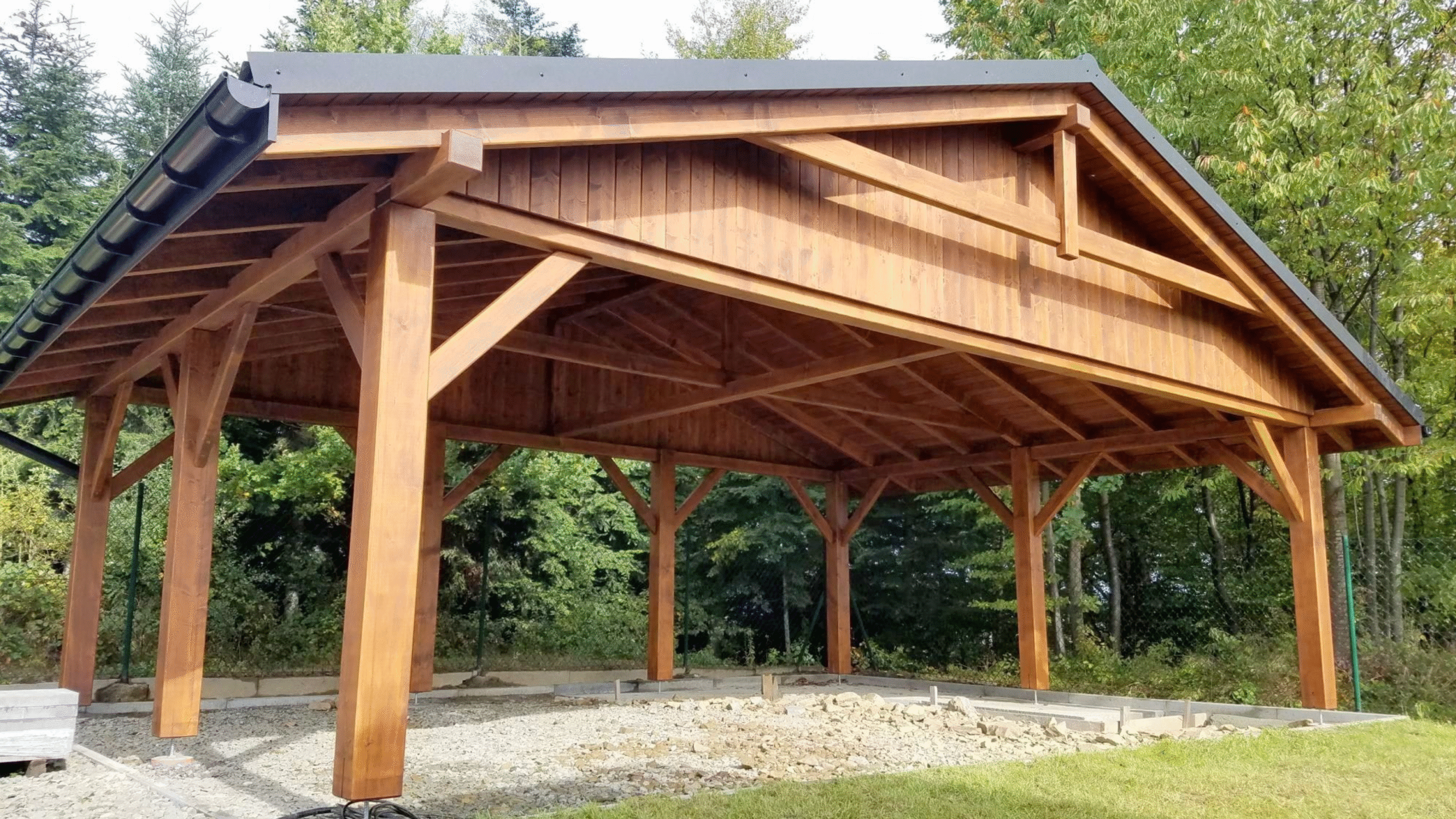 Wiata wykonana w wersji szlifowanej, co podnosi estetykę i jakość wykończenia. Wszystkie elementy konstrukcji zostały docięte komputerowo na maszynie CNC oraz wyposażone we wszystkie obróbki ciesielskie, takie jak czopy, gniazda, wiercenia i jaskółcze ogony. Każdy element jest ponumerowany zgodnie z projektem, co sprawia, że konstrukcja jest przystosowana do samodzielnego montażu. Korzystając ze szczegółowej instrukcji, złożysz wiatę intuicyjnie, krok po kroku, jak z klocków LEGO.