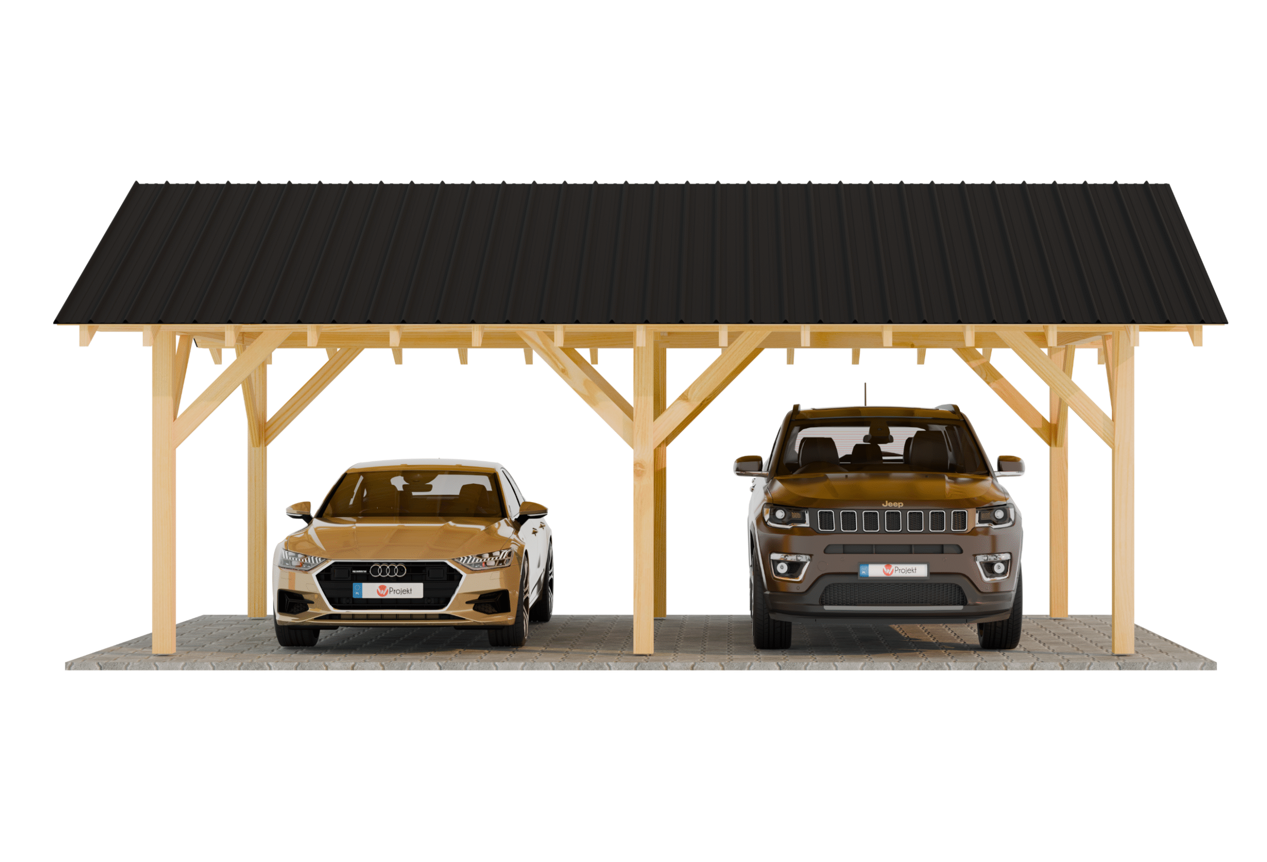 Projekt wiaty samochodowej drewnianej 4m x 7m
