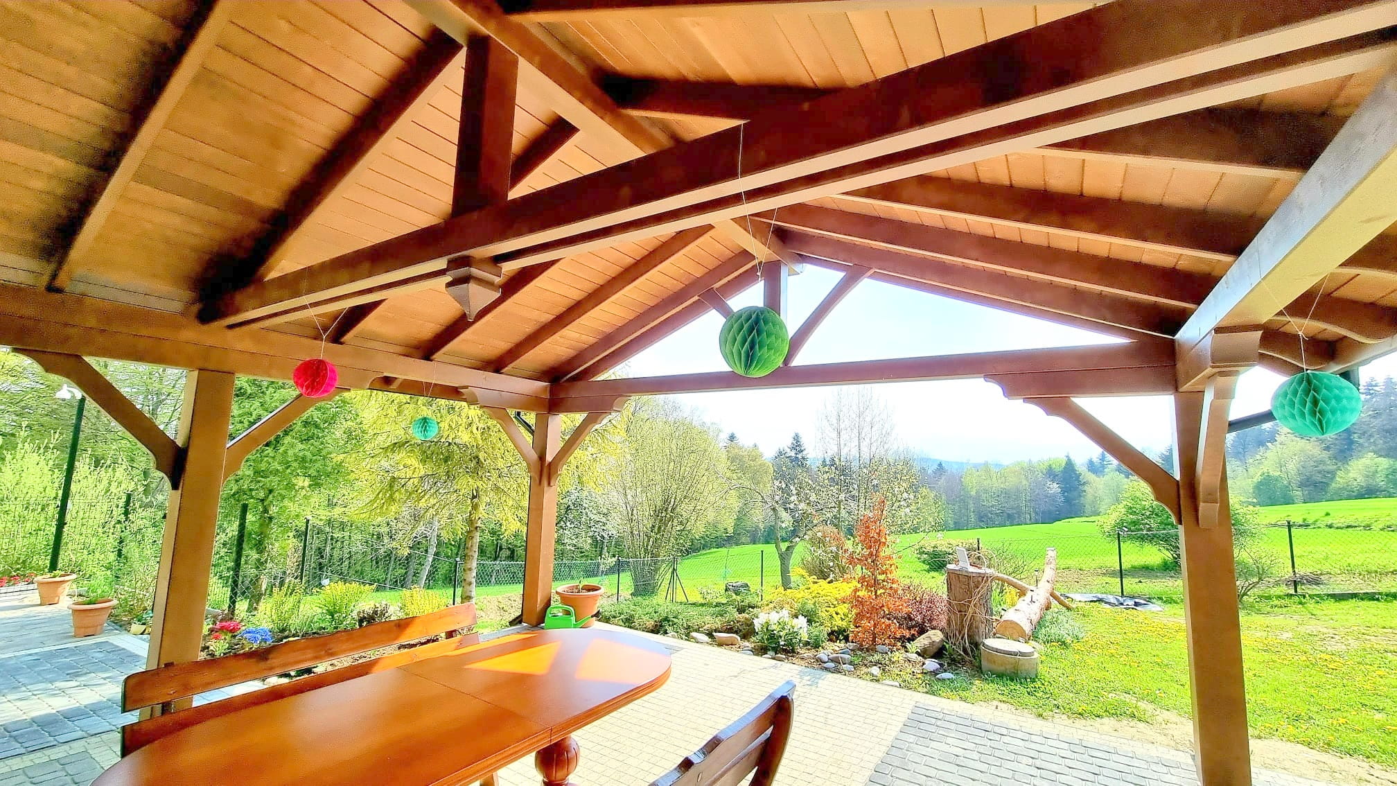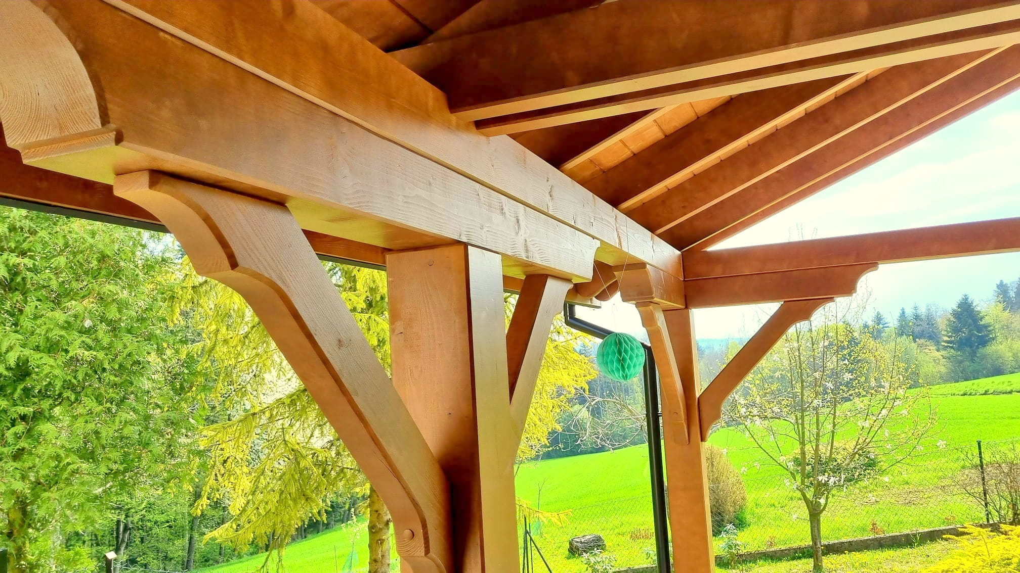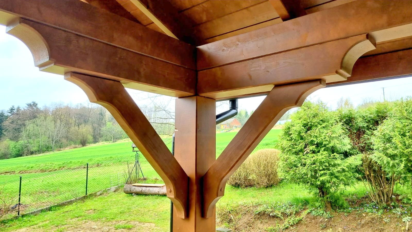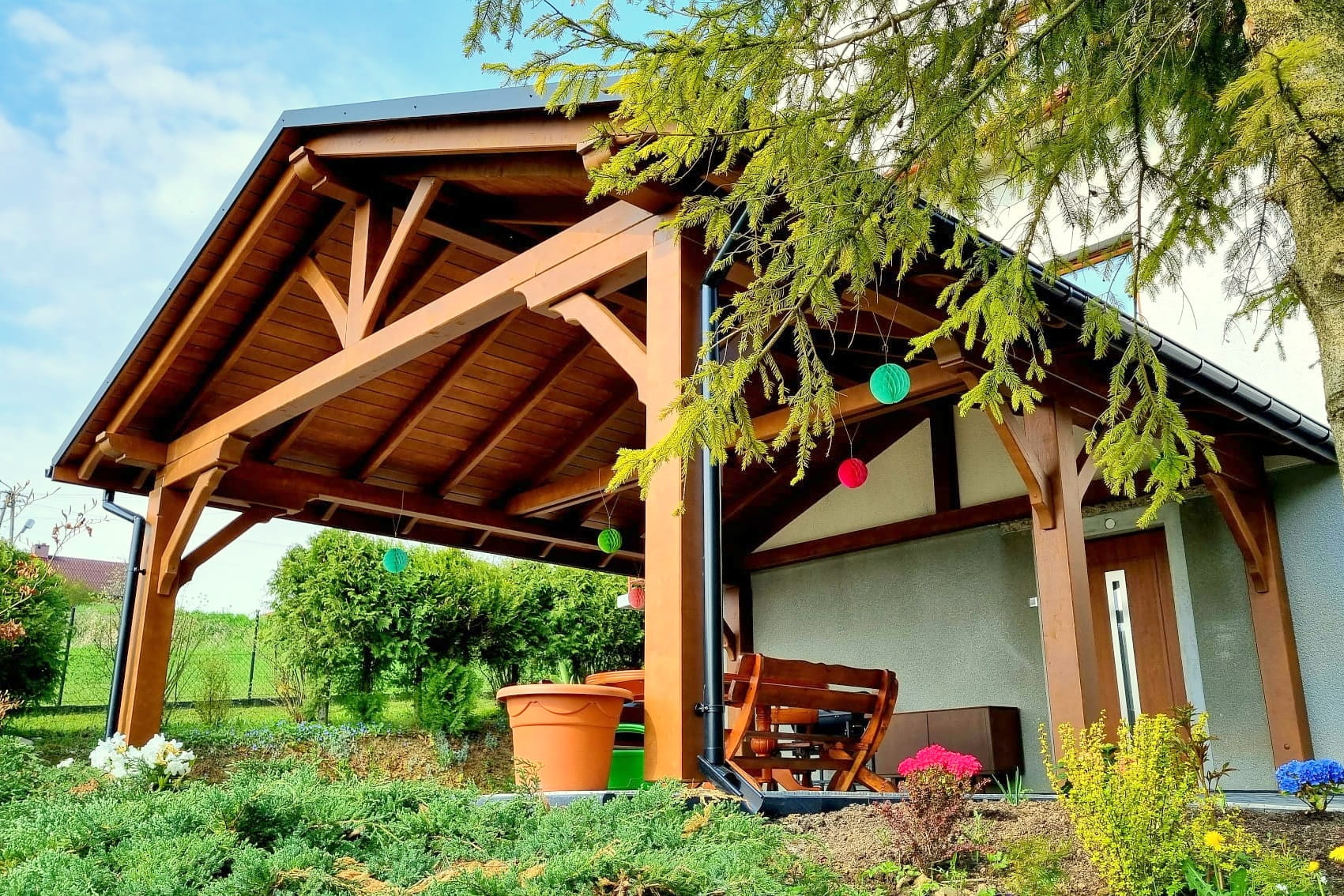 Oferta dotyczy wiaty szlifowanej. Wiata przez nas przygotowana jest docięta komputerowo na maszynie CNC oraz posiada wszystkie konieczne obróbki ciesielskie, tj. gniazda, czopy, wiercenia, jaskółcze ogony.