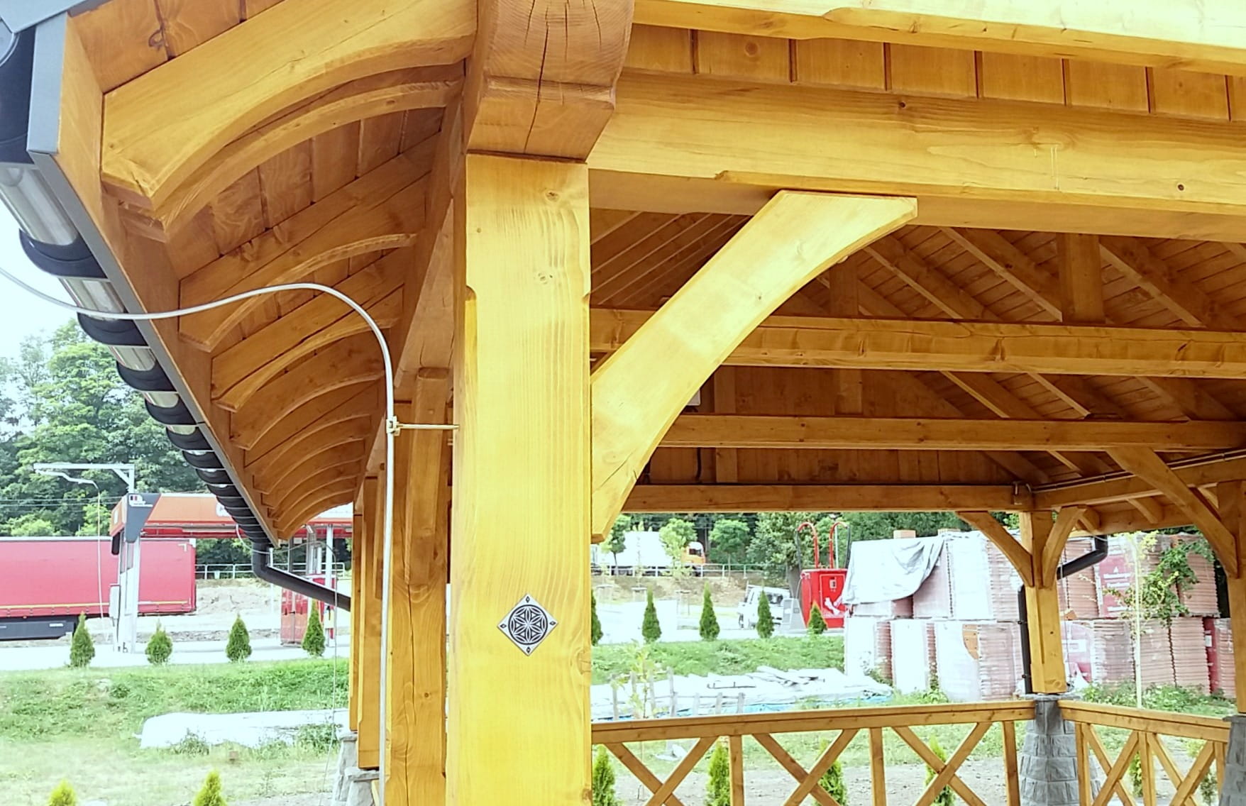 Oferta dotyczy wiaty szlifowanej. Wiata przez nas przygotowana jest docięta komputerowo na maszynie CNC oraz posiada wszystkie konieczne obróbki ciesielskie, tj. gniazda, czopy, wiercenia, jaskółcze ogony.