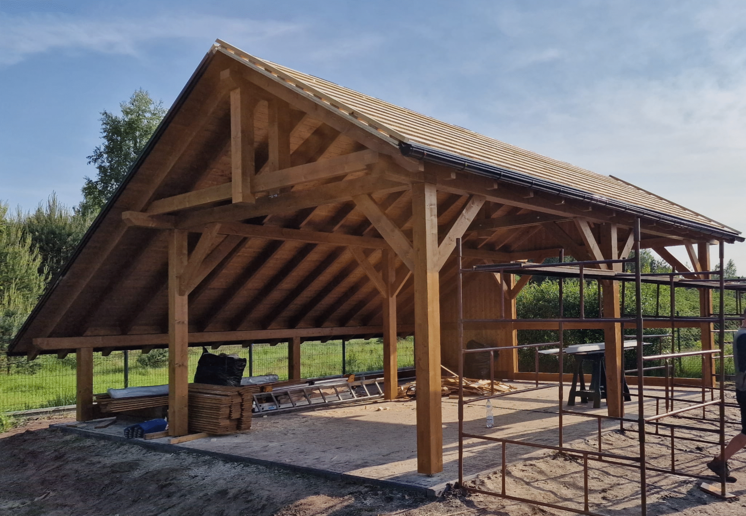 Standard obejmuje konstrukcję struganą oraz wykonanie wszystkich elementów na maszynie CNC. Wszystkie obróbki ciesielskie, takie jak gniazda, czopy, wiercenia i jaskółcze ogony, są przygotowane z dużą precyzją, co przekłada się na sztywną i trwałą konstrukcję.